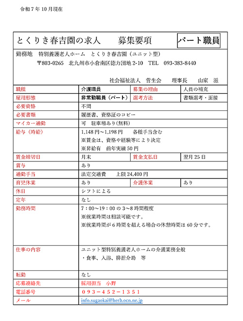 とくりき春吉園:介護職[非常勤職員(パート)]詳細情報pdf